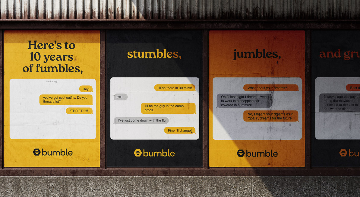 Here’s to 10 years of Bumble fumbles, stumbles, jumbles and grumbles. A humorous look back at what makes the app’s most important feature, the people, so human… they’re mistakes.