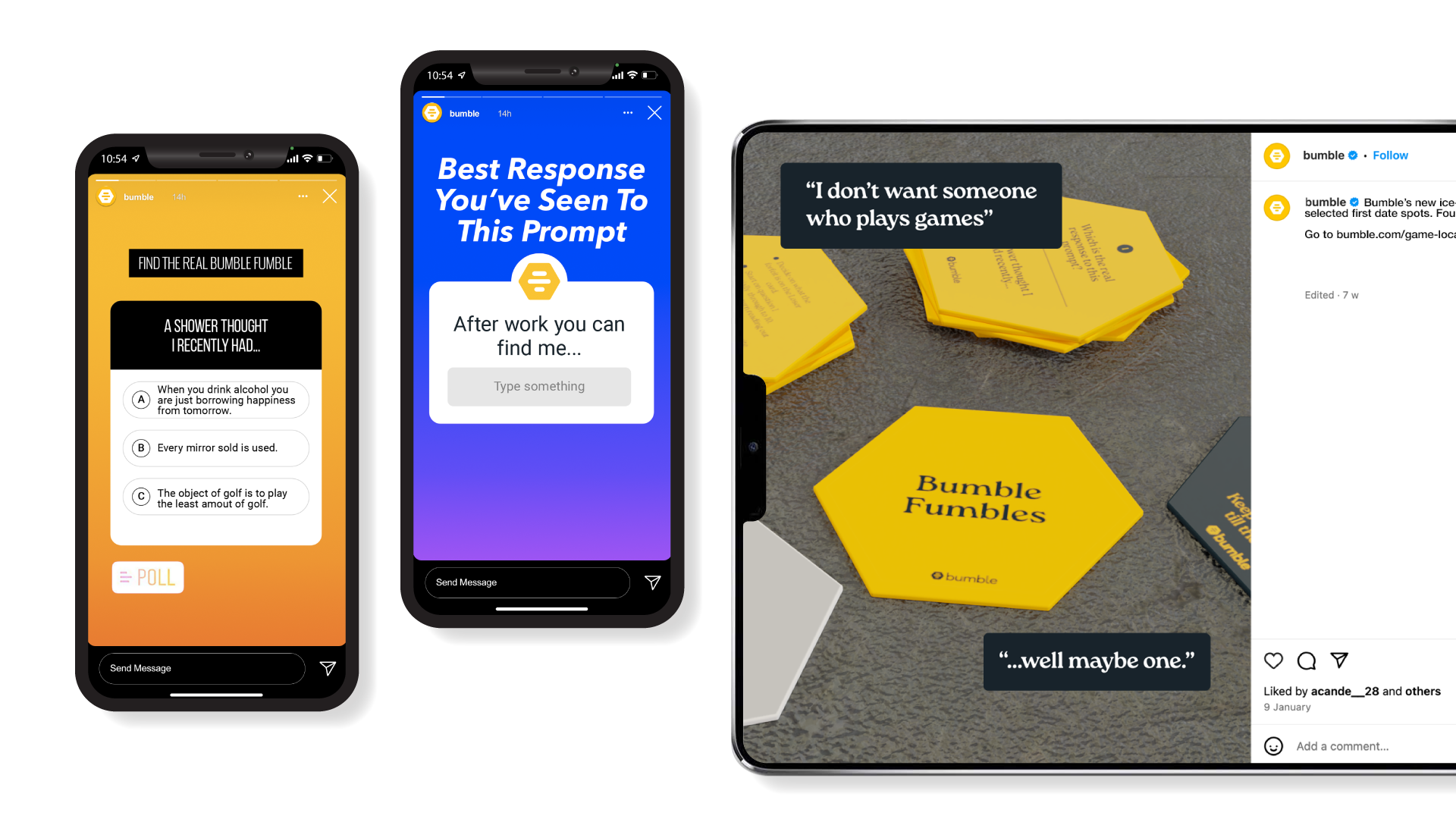 Bumble will extend the campaign online, sharing these interactions while also encouraging others to engage and comment on their own mistakes through Instagram’s Poll and Story features.